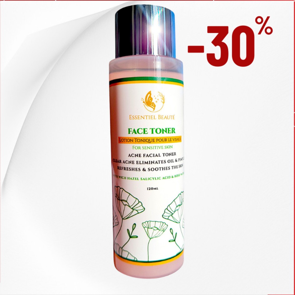 Lotion tonique rafraîchissante à base d’eau de rose, d’acide salicylique et d’hamamélis, conçue pour hydrater, purifier et apaiser les peaux à tendance acnéique. Elle aide à désobstruer les pores, réguler le sébum et maintenir une peau fraîche, nette et équilibrée au quotidien.
