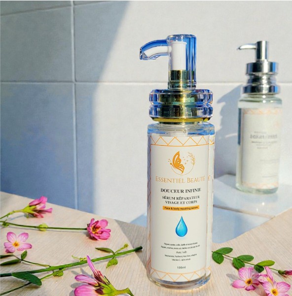 Le Sérum Douceur Infinie est un sérum multi-usage, adapté au visage et au corps, conçu pour offrir une hydratation intense et durable tout en améliorant visiblement l’apparence et l’éclat de la peau. Sa formule avancée associe des actifs reconnus pour hydrater, unifier et soutenir la réparation cutanée.